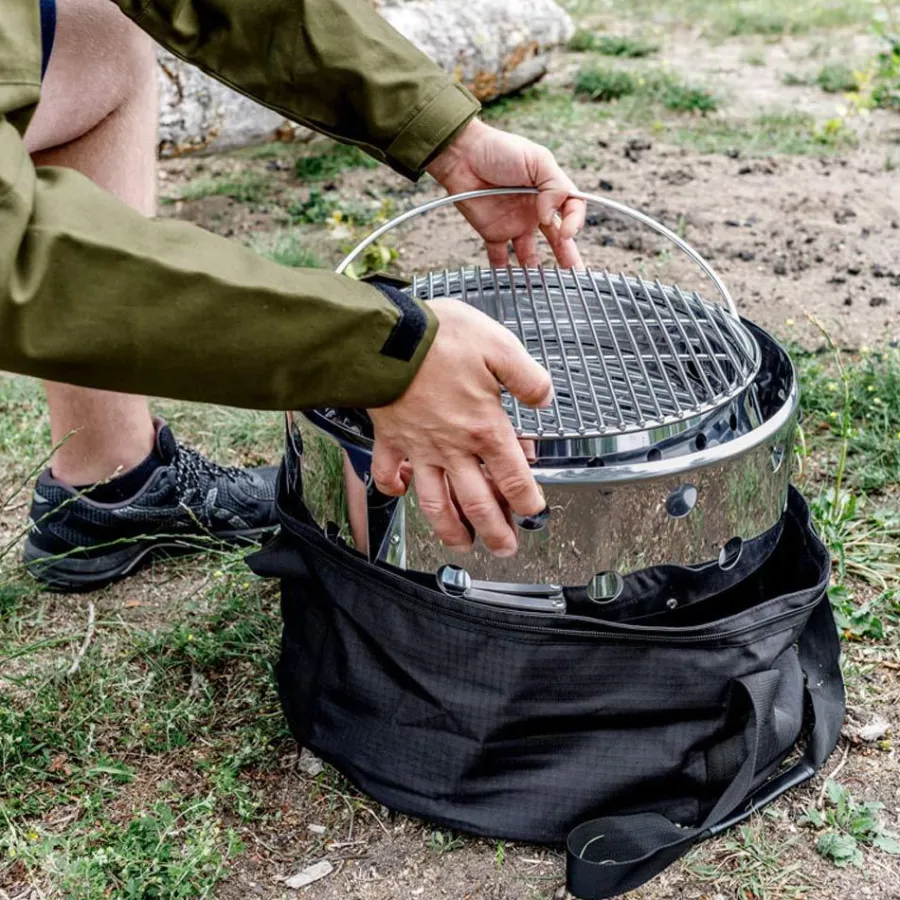 After the barbecue and cooking adventure, you can fold the Atago in one easy step. It can be quickly stowed away in the supplied transport bag. Thanks to various pockets for accessories, a reinforced base, a removable and wipeable insert, the all-rounder Atago accompanies you on your next trip to the mountains, the forest or the river.