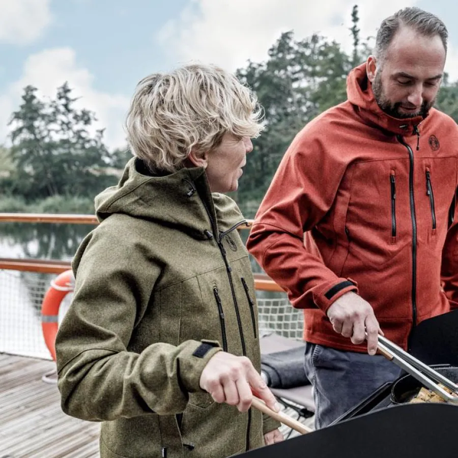 After use on sweaty and sparking expeditions, simply airing it out is enough to make it smell fresh again. Because loden fabric is odor-resistant, body odor and smoke odor will not soak into the material. Coarse dirt (e.g. mud) can simply be brushed out dry with a clothes brush. Normally, washing is not necessary. However, if your explorations have been so intense that brushing is no longer sufficient, you can wash your loden clothing with the specially developed hand detergent or take it to a dry cleaner. You can iron your Petromax Loden to preserve its water-repellent properties. Set your iron to a medium setting and smooth the surface of your garment with light pressure. You should cover the logo and lettering embroideries with ironing paper.
