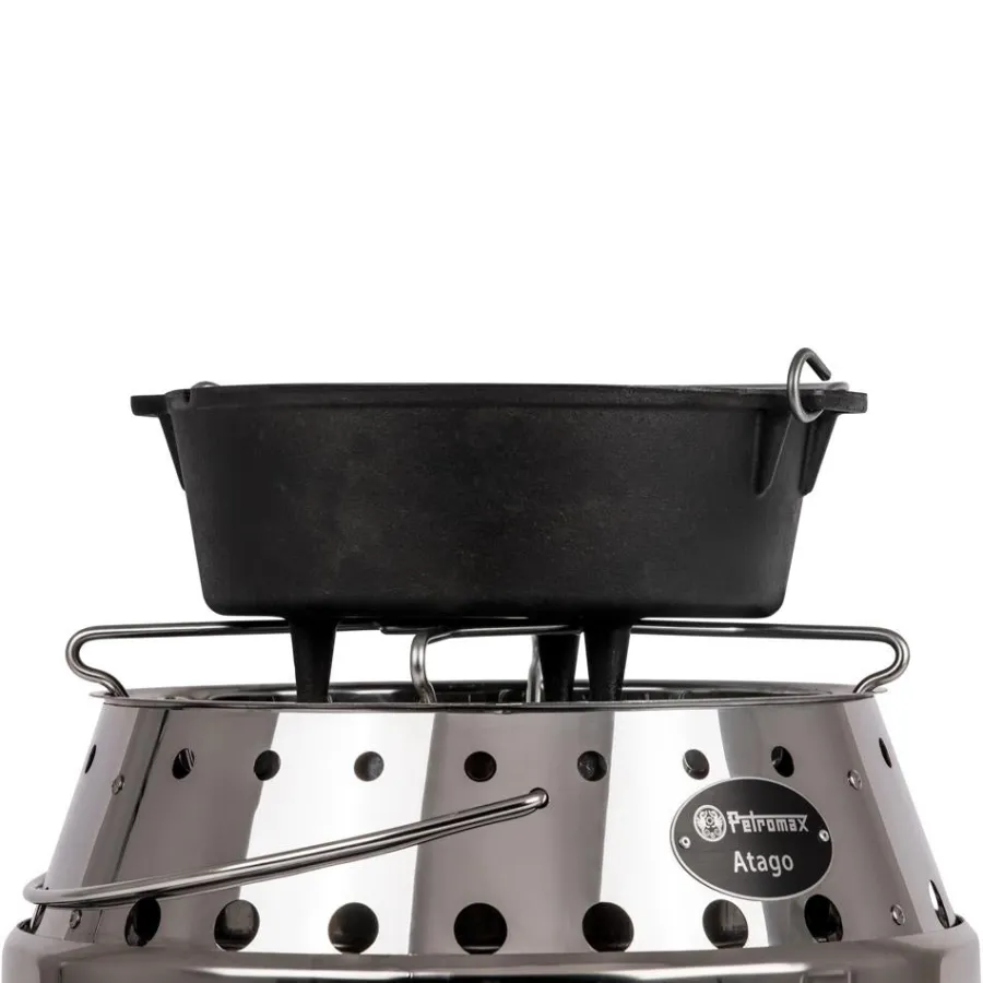 With the cooking cross, you can bring fire pots, pans and co. to a boil on your Atago. Simply inserted into the opening of your functional outdoor cooking area, the compact accessory forms a stable support surface for cast and wrought iron. This way you can combine all fire pot and pan models as well as Petromax special shapes made of cast iron freely according to your taste. Satisfy your ravenous appetite: The stainless steel cooking top reliably supports your iron and withstands the blazing heat. The special cross-shaped design with a central recess provides you with a wider support surface and enough space for fire pot models with feet. In addition, space is left for the handle and feet so that your fire pot lid can be used as a pan without any problems. Make your cooking even more individual.